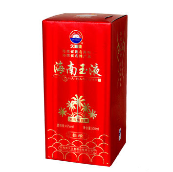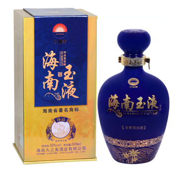 海南玉液酒是海南久之美酒業有限公司為海南本土市場量身定制的優質濃香型白酒,飲后或豪飲后均不上頭、不口干、身體恢復快。2012年被海南省工商局認定為“海南省著名商標”;2013年被海南省名牌產品認定委員會授予為“2013年海南省名牌產品”稱號。該酒經多位國家級和省級評酒專家品評,一致認同海南玉液酒不亞于“五糧液” 。該酒的包裝設計富有強烈時代氣息和濃厚地方特色,創造性地采用了“要想身體好常來海南島”宣傳海南的流行語,溶匯了海南文化元素,適宜接待應酬及做饋贈禮品,是海南...[更多內容]